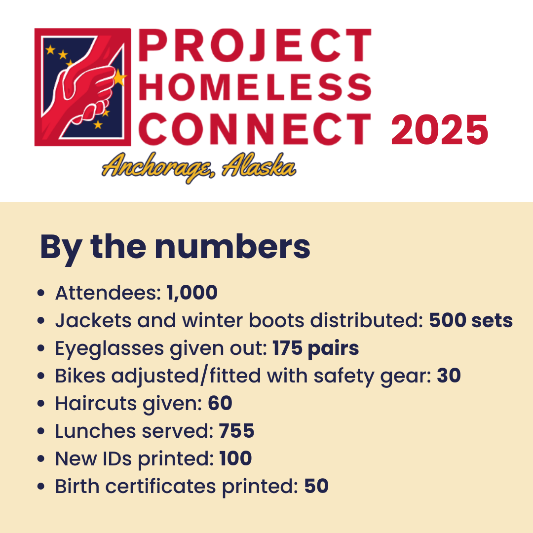 Around 90 service providers spent the day connecting people to housing and shelter, jobs and training, healthcare and treatment. Some updated guests’ information or enrolled them in the homelessness response database for the first time. People Mover ensured free rides for the whole city that day. Providence Alaska offered mammograms. The Lions Club provided eyeglasses. DMV printed new IDs, necessary to move forward with a job or housing. Agencies processed applications for benefits such as SNAP, the Supplemental Nutrition Assistance Program. Stylists gave fresh haircuts, volunteers washed feet, and Bike Anchorage joined with the Trek bike store to finetune what people rode in on. And so it went.